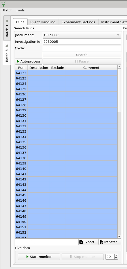 I used to be able to input an RB number into the ISIS Reflectometry interface, and then it would auto-populate the runs and titles, which could then be transferred for reduction i the appropriate groupings. However, this no longer works, and I just get a list of the runs associated with the RB, but no other information, meaning the transfer doesn’t work (see image).
